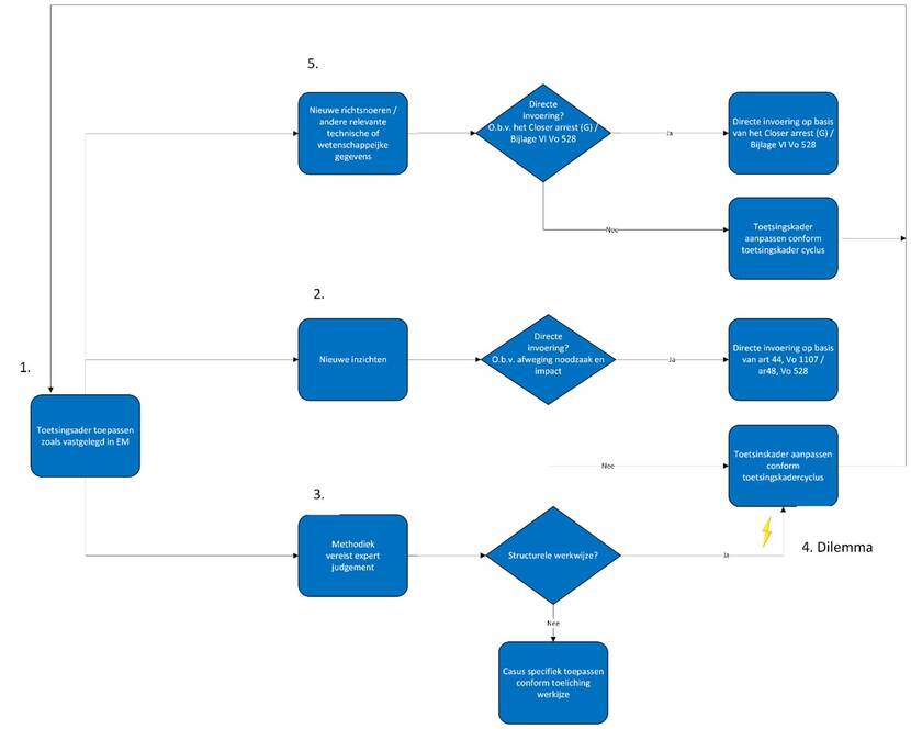 Ter verduidelijking zijn de mogelijke routes voor wijzigingen in het toetsingskader aangegeven in onderstaand schema.